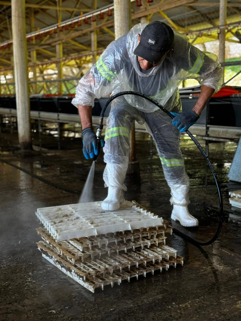 Higienização completa das instalações, assegurando que seu ambiente de criação seja eficiente, saudável e livre de patógenos. Entendemos que a limpeza profunda é o primeiro e mais importante passo para prevenir doenças e otimizar o desempenho das aves. Com o uso de equipamentos de alta pressão, alta vazão e produtos desinfetantes, removemos sujidades orgânicas e inativamos microrganismos que comprometem a saúde e o bem-estar animal, minimizando perdas e maximizando a produtividade.